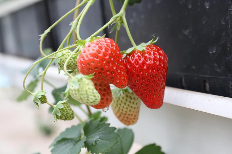 种植草莓,三分靠技术,七分靠管理。“草莓是很娇嫩的水果,对温度、水肥的变化都很敏感。为了让草莓更好地生长,基地引入先进的悬挂上下移动式栽培技术,通过精准滴灌施肥,有效控制温度和光照,提高草莓的抗逆性和耐贮运性,使草莓的有机酸含量达到普通品种的5-10倍,极大提升果实的品质和口感,深受市场欢迎。”说起种植草莓的“秘诀”,基地负责人范俊辰侃侃而谈。