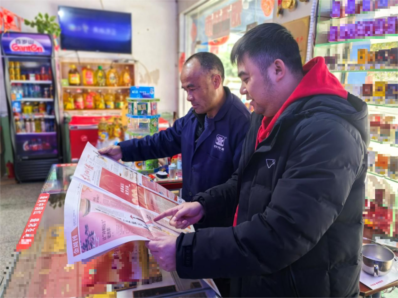 工作人员利用普法报刊向客户开展普法宣传