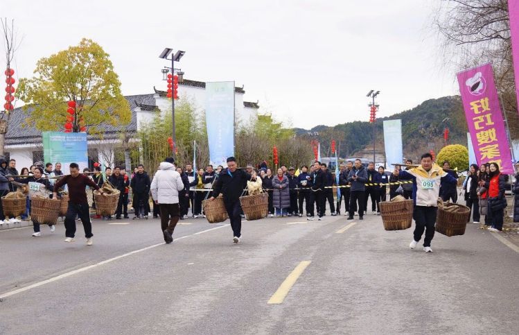 村跑不仅是一场体育盛会,也是一次乡村振兴成果的集中展示。赛事汇聚了30余家本地农户、合作社与企业,涵盖传统村落文化展示区、非遗文化展区、浮梁县名优特农产品等前往展览,吸引了大量跑者与游客驻足选购;而文体赛事则通过茶道挑运比赛,呈现了一场精彩绝伦的民俗文化表演,不仅展现了挑运技艺的传承,更传递出浮梁人民勤劳坚韧的精神风貌。