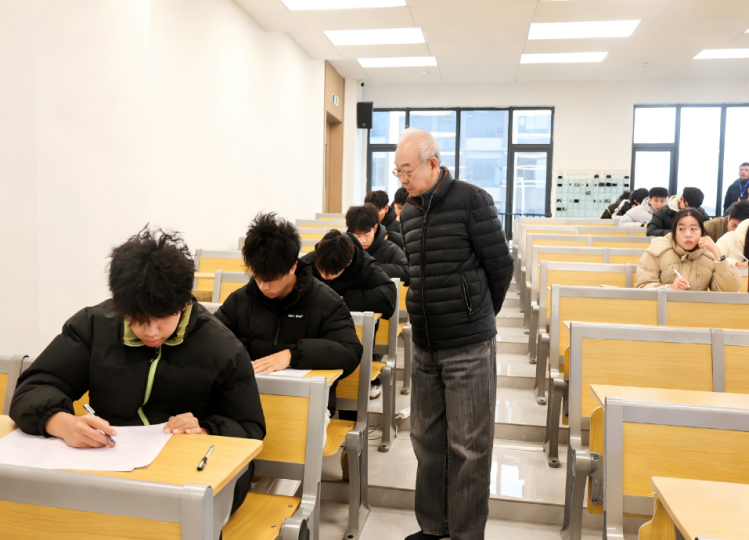 校领导一行细致查看考场秩序、考试环境、监考教师履职及学生应试状态,对考场布置规范性与考试纪律执行情况进行了重点检查,并亲切慰问了监考教师与考务人员。本次期末考试组织严谨、运行有序,各考场纪律严明,监考教师认真负责,考生专注作答,展现出学校扎实的学风与诚信的考风。