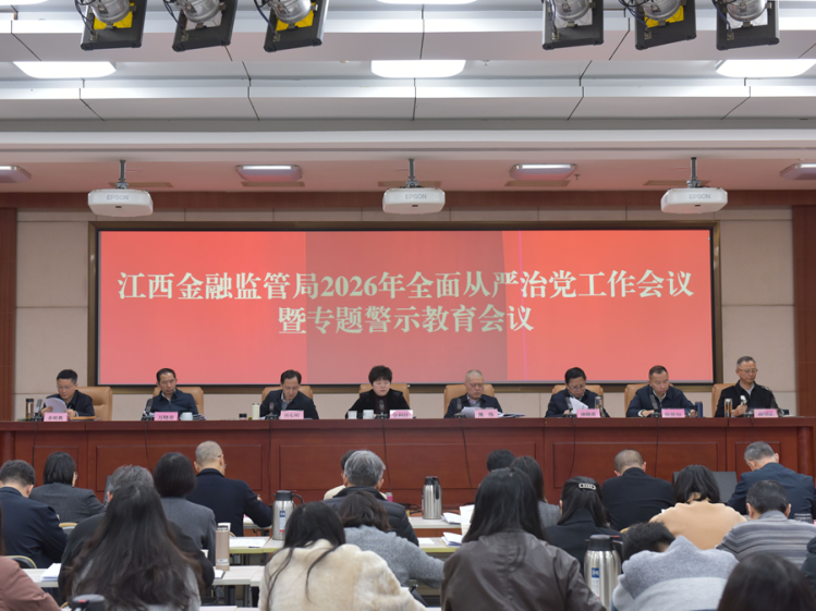 1月28日,江西金融监管局召开2026年全面从严治党工作会议暨专题警示教育会,落实金融监管总局2026年全面从严治党工作会议暨专题警示教育会精神,总结2025年局系统全面从严治党工作,部署2026年重点工作。江西金融监管局党委书记、局长金利佳出席会议并讲话,党委委员、纪委书记万晓春传达二十届中央纪委五次全会精神和2026年全面从严治党工作会议暨专题警示教育会精神并讲话,江西金融监管局党委委员、二级巡视员熊伟主持会议。江西金融监管局领导班子成员出席会议。
