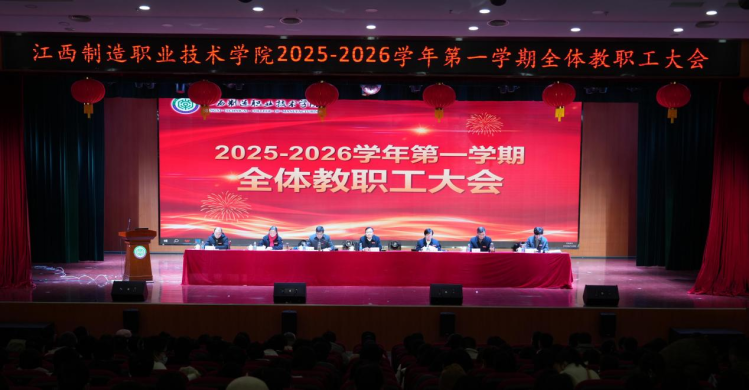 近日,江西制造职业技术学院召开2025-2026学年第一学期全体教职工大会。全体校领导出席会议。大会由党委委员、副校长付江帆主持。
