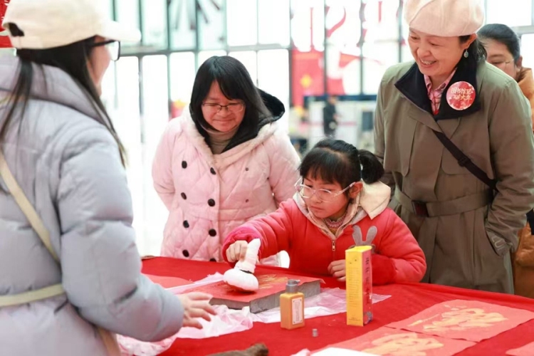 墨香伴年味,骏马启新程。2月10日上午,江西省图书馆“图书馆里过大年”系列活动之“城市客厅唤醒计划——迎春市集”在江西省图书馆二层大厅举行。活动以“民俗、书香、体验”为内核,将传统年俗、非遗技艺、馆藏资源与数字科技创新融合,打造了一场可看、可玩、可体验、可带走的新春文化游园会,吸引了众多市民读者热情参与,在浓浓书香中共庆吉祥马年。