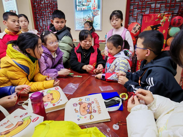 2月11日上午,南昌市青云谱区新时代文明实践中心体验课堂内暖意融融,区级非遗代表性项目“青云谱绳结编织技艺”传承人孙丽云,正耐心指导孩子们编织绳结手链。
