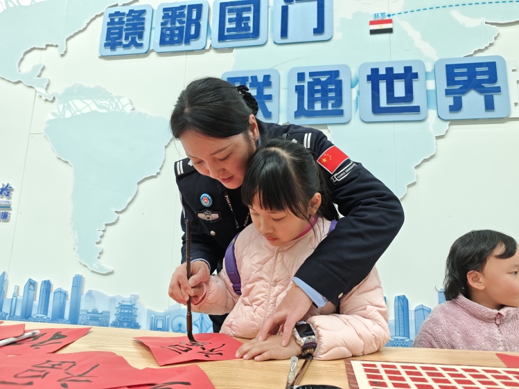 与此同时,该站还积极在执勤现场开展迎新春主题活动,邀请过往旅客提笔写“福”字。“带着福气出国门,平平安安回家来。”执勤四队副队长黄琦为旅客送上新春祝福。不少外国友人驻足参与,亲手写下“福”字。